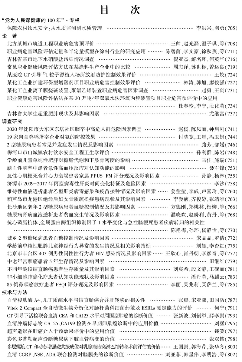 《中国卫生工程学》2021年10月第20卷(总第30卷)第5期目录