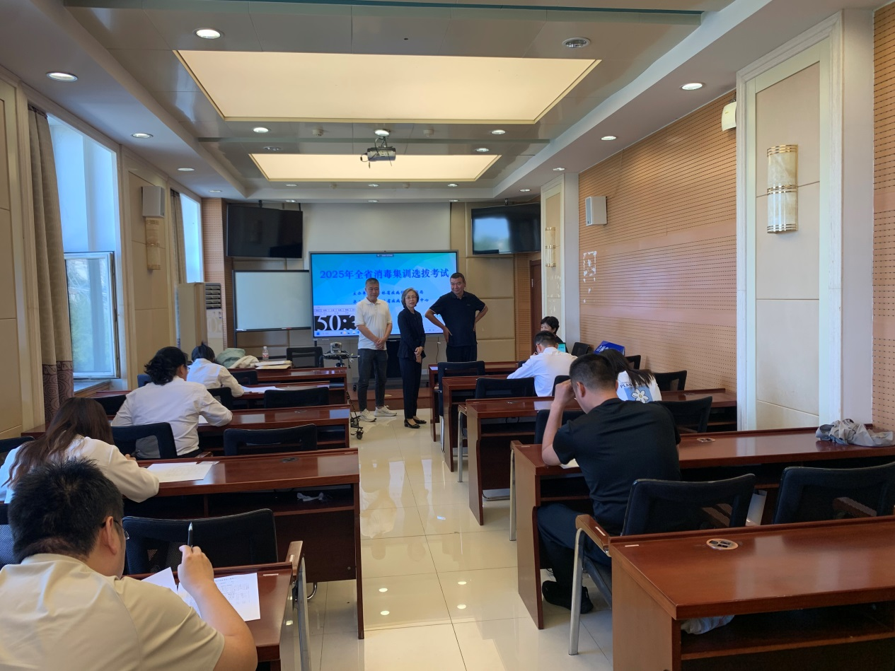 开班仪式由省疾控中心消毒与病媒生物预防控制所刘晓杰所长主持。培训班以理论知识讲授和消毒题目练习为主要形式,课程内容包括:消毒相关法律、法规;消毒产品检测方法;消毒实验用微生物要求;消毒剂稳定的评价方法;消毒剂金属腐蚀性评价方法等内容。培训班期间,所有学员认真听课,踊跃提问,互动交流,达到了良好的培训效果。培训结束后,对所有学员进行了集训选拔考试。选拔考试由省疾控中心纪检监察审计办公室张卯初主任、尹菲全程监督。省疾控中心姚来顺副主任莅临考场,叮嘱学员要仔细审题,认真作答,争取考出最好的成绩。桦甸市疾控中心的李锈全、吉林市疾控中心的丁博取得了集训选拔考试的前两名,将代表吉林省参加全国消毒技能竞赛。